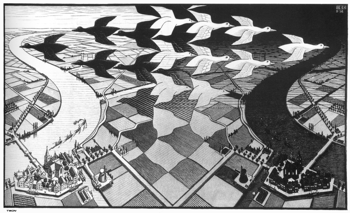- Maurits Cornelis Escher (1898-1972), Olanda, incisore. Nato a Leeuwarden, visse molto in Italia. Artista geniale, nelle sue litografie e incisioni su legno combinò creatività, forme geometriche, illusioni ottiche, architetture e mondi impossibili.