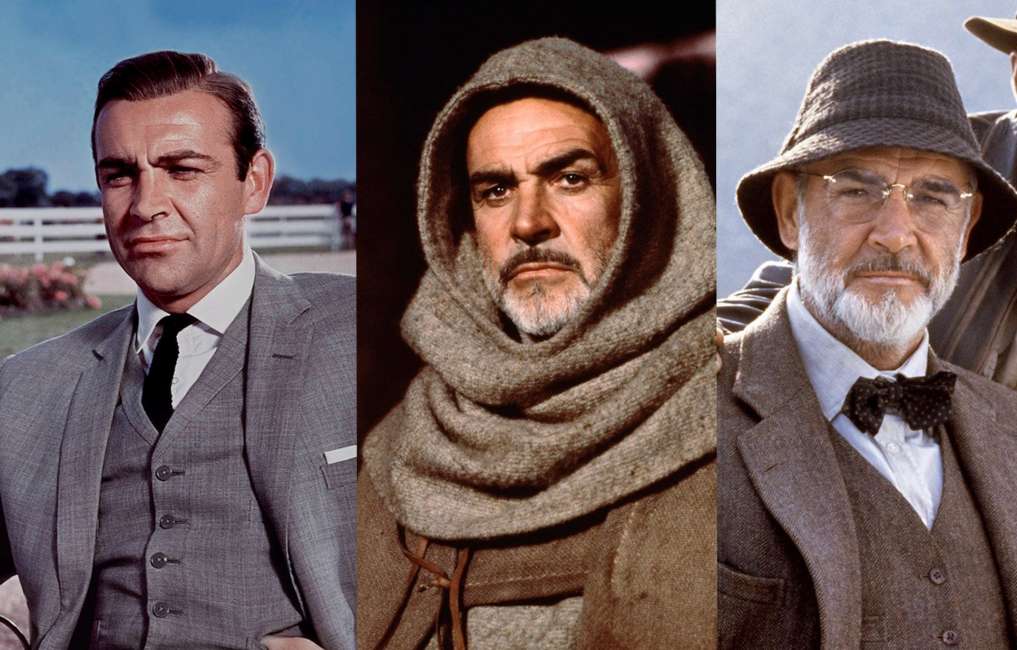 Il celebre attore scozzese Sean Connery in 3 momenti diversi sul set: Jamese Bond, fra' Guglielmo da Baskerville e padre di Indiana Jones