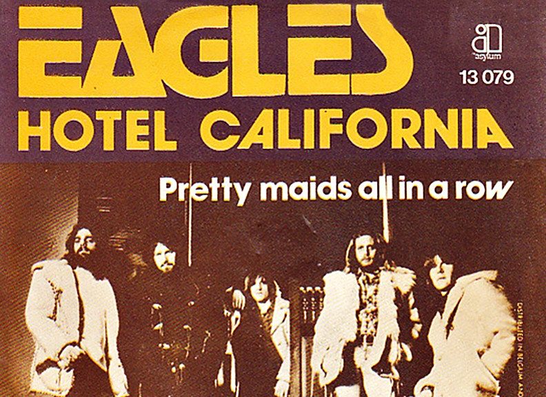 - 1976 uscì ‘Hotel California’. Massima espressione del ‘country rock’, fu il capolavoro assoluto degli Eagles: con 32 milioni di copie è tra gli album più venduti di sempre. Il disco di Don Felder, Glenn Frey, Randy Meisner e Don Henley fu trascinato dall’omonimo singolo, 49° fra i best 500 di ‘Rolling Stone’.