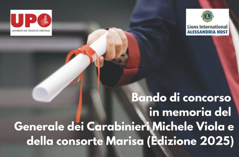 Il Lions Club Alessandria Host ha istituito una borsa di studio dell’importo di 2.000 euro per gli studenti del DISIT, Dipartimento di Scienze e Innovazione Tecnologica dell’Università del Piemonte Orientale, che abbiano discusso la tesi di laurea su tematiche ambientali nell’anno accademico 2024/25, con votazione pari o superiore a 105/110, e siano iscritti a un Corso di Laurea Magistrale offerto dallo stesso Dipartimento per l’a/a 2025/26.