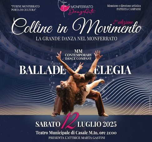 Le colline sinuosamente si muovono con le loro curve gentili, ricordando pentagrammi musicali e corpi plastici di ballerini, grappoli d’uva che riportano ai movimenti circolari delle danze arcaiche o alla forza di coreografie corali dense di colori e suggestioni. Il meraviglioso Teatro Municipale di Casale Monferrato (sabato 12 alle 21) sarà il luogo d’arte per eccellenza che ospiterà la creatività di importanti coreografi come Mauro Bigonzetti, Michele Merola e Enrico Morelli, per la MM Contemporary Dance Company, compagnia che eccelle anche all’estero e che quest’anno sarà insignita del PREMIO MONFERRATO DANZARTE 2^ Ed. insieme a Claudia D’Antonio e Salvatore Manzo splendidi danzatori Étoiles del prestigioso Teatro San Carlo di Napoli.