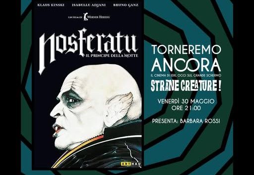 La proiezione di “Nosferatu, il principe della notte” verrà introdotta da Barbara Rossi, media e film educator, critica cinematografica, presidente dell’Associazione di cultura cinematografica ‘La Voce della Luna’. La serata speciale conclusiva, eccezionalmente organizzata venerdì 30 maggio, anziché nella tradizionale giornata di mercoledì, viene proposta in collaborazione con ‘Rossopomodoro’ e arricchita di contributi cinefili.