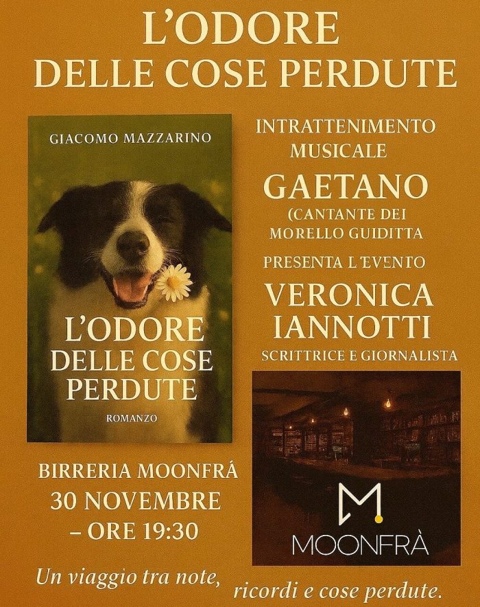 Si svolgerà domenica 30 novembre alle ore 19,30, presso il Birrificio Moonfra di Casale Monferrato, la presentazione del libro “L’odore delle cose perdute” dello scrittore casalese Giacomo Mazzarino.