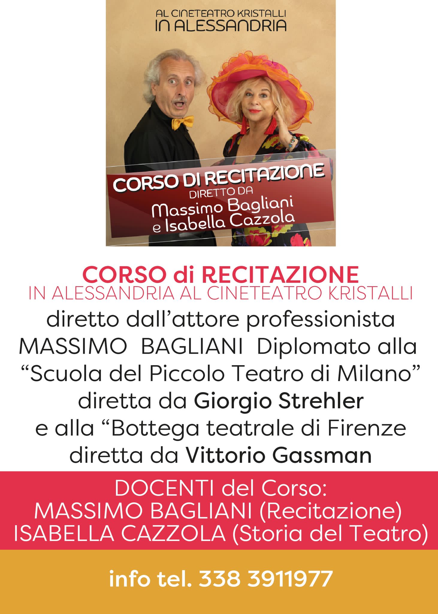 ‘Facciamoteatro’ in ALESSANDRIA, al cineteatro Kristalli, da NOVEMBRE 2025 A MAGGIO 2026. Età minima 15 anni, età massima 65 anni. Saggio-spettacolo in scena al Teatro Alessandrino venerdì 5 giugno 2026.