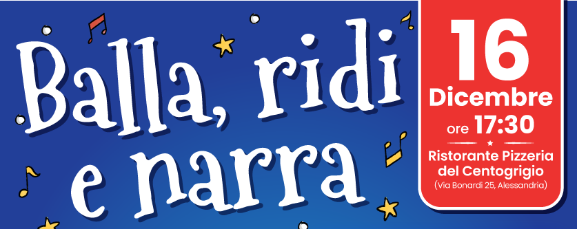 “Balla, ridi e narra” è il titolo della serata benefica organizzate per sabato 16 dicembre al ristorante pizzeria del Centogrigio per raccogliere fondi, tramite Solidal per Ricerca, per la struttura di Ostetricia e Ginecologia dell’Ospedale di Alessandria.