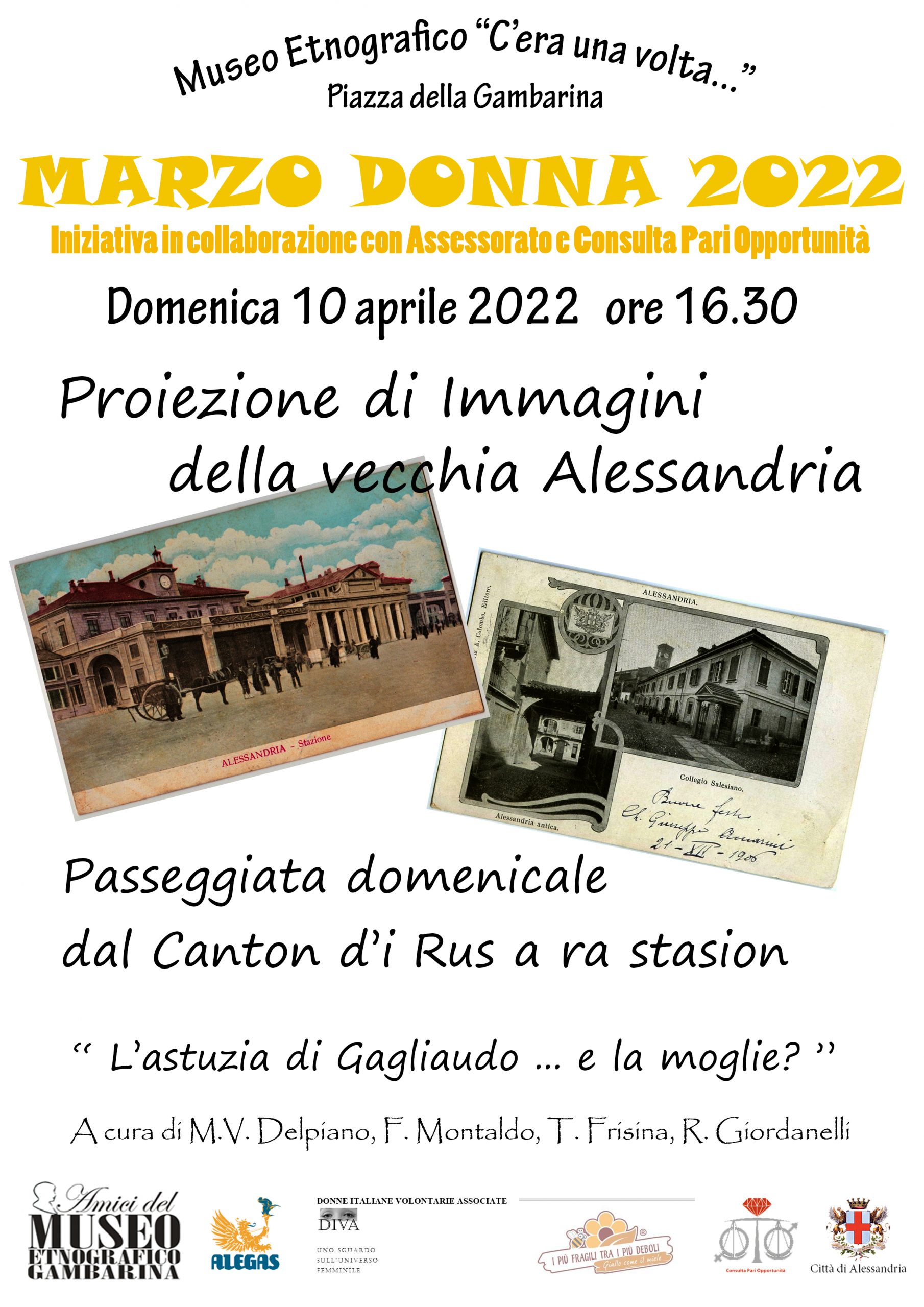Domenica 10 aprile 2022 la programmazione offre un evento inserito nel fitto calendario delle iniziative MARZO DONNA 2022, in collaborazione con Assessorato e Consulta alle Pari Opportunità del Comune di Alessandria, Amici del Museo, Associazione D.I.V.A. (Donne Italiane Volontarie Associate), Associazione “Amici ed ex Allievi del Liceo Scientifico Galileo Galilei di Alessandria APS”.