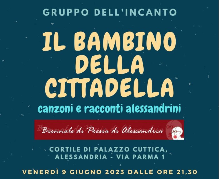 Il cortile di Palazzo Cuttica ospiterà, venerdì 9 giugno (21.30), il concerto del Gruppo dell’Incanto “Il Bambino della Cittadella”, canzoni e racconti alessandrini, evento organizzato in collaborazione con il Conservatorio Vivaldi ed il Comune di Alessandria, ad ingresso gratuito.