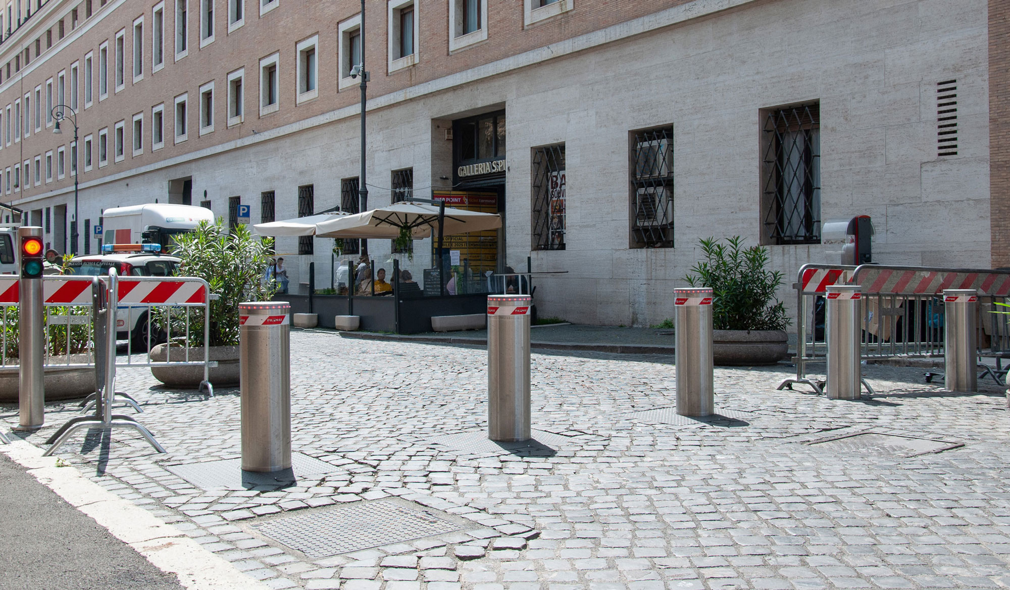 Gli avanzati cilindri in acciaio satinato, capaci di resistere all’urto di un camion lanciato a 80 km/h e di garantire un controllo selettivo (pedoni liberi di accedere, veicoli solo se autorizzati), sono stati posizionati nei principali varchi di accesso al colonnato del Bernini. Progettati per integrarsi con il contesto monumentale senza comprometterne l’estetica, rappresentano un raro esempio di come tecnologia e arte possano convivere, facendo scuola a livello internazionale.