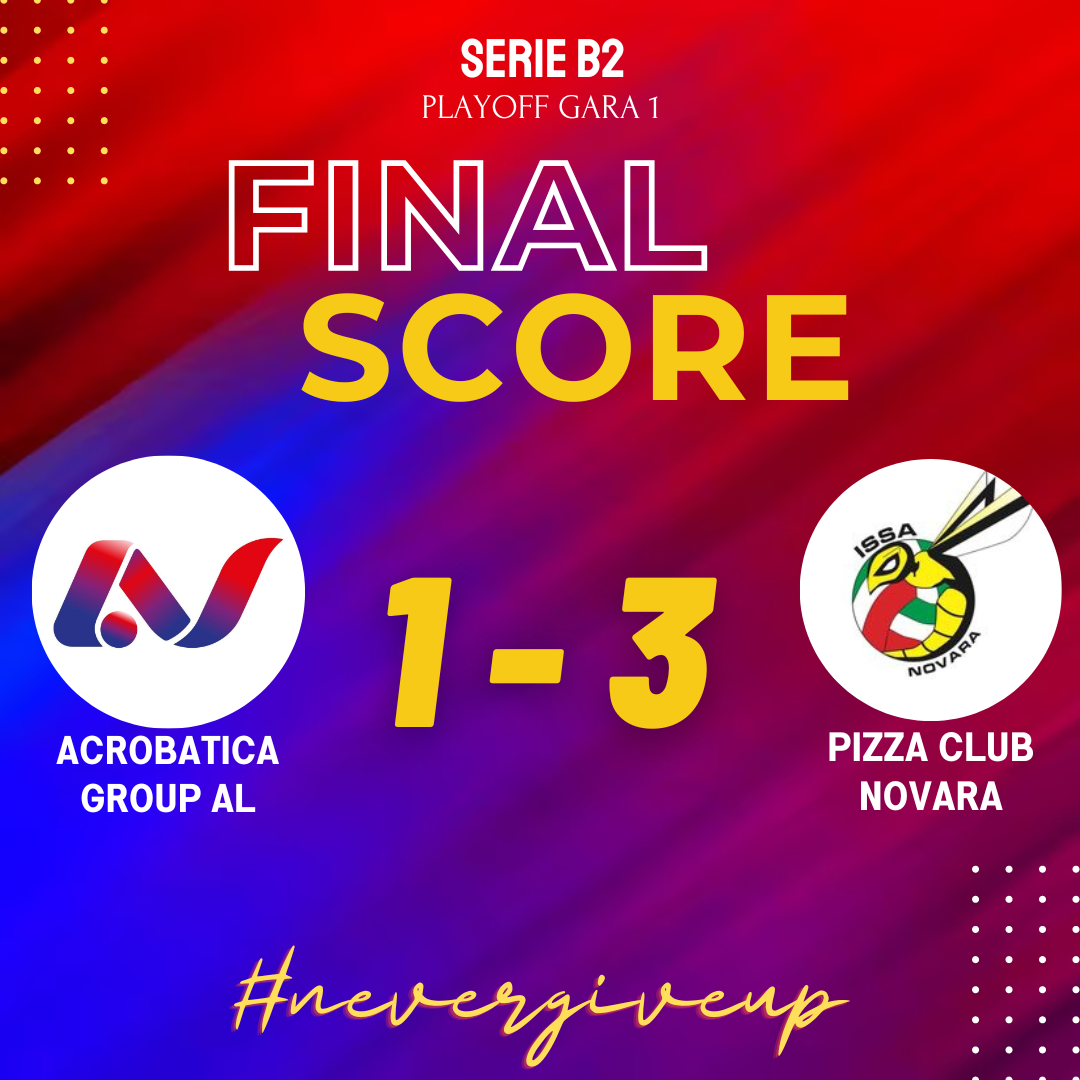 Proprio sul traguardo, con la B1 nel mirino, Acrobatica Alessandria ha sbagliato partita. O forse, semplicemente, ha trovato un avversario più forte. Niente è perduto. Per salire in B1 ancora 2 possibilità: vincere 3-0 a Novara sabato prossimo (20.30), impresa difficile, o provarci con i playoff. Però ieri sera Acrobatica è stata superata da Novara tra le mura amiche del PalaCima, con i parziali 23-25, 16-25, 25-16, 17-25.