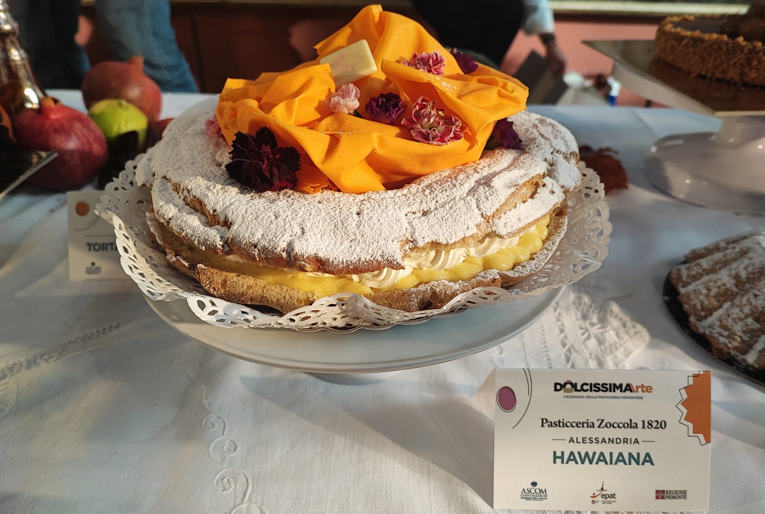 Alla presentazione di ieri mattina presso il Museo Nazionale del Risorgimento Italiano hanno partecipato 2 pasticcerie alessandrine: Zoccola 1820 con ‘Hawaiana’ e Pasquali con ‘Incontro di bacio’.