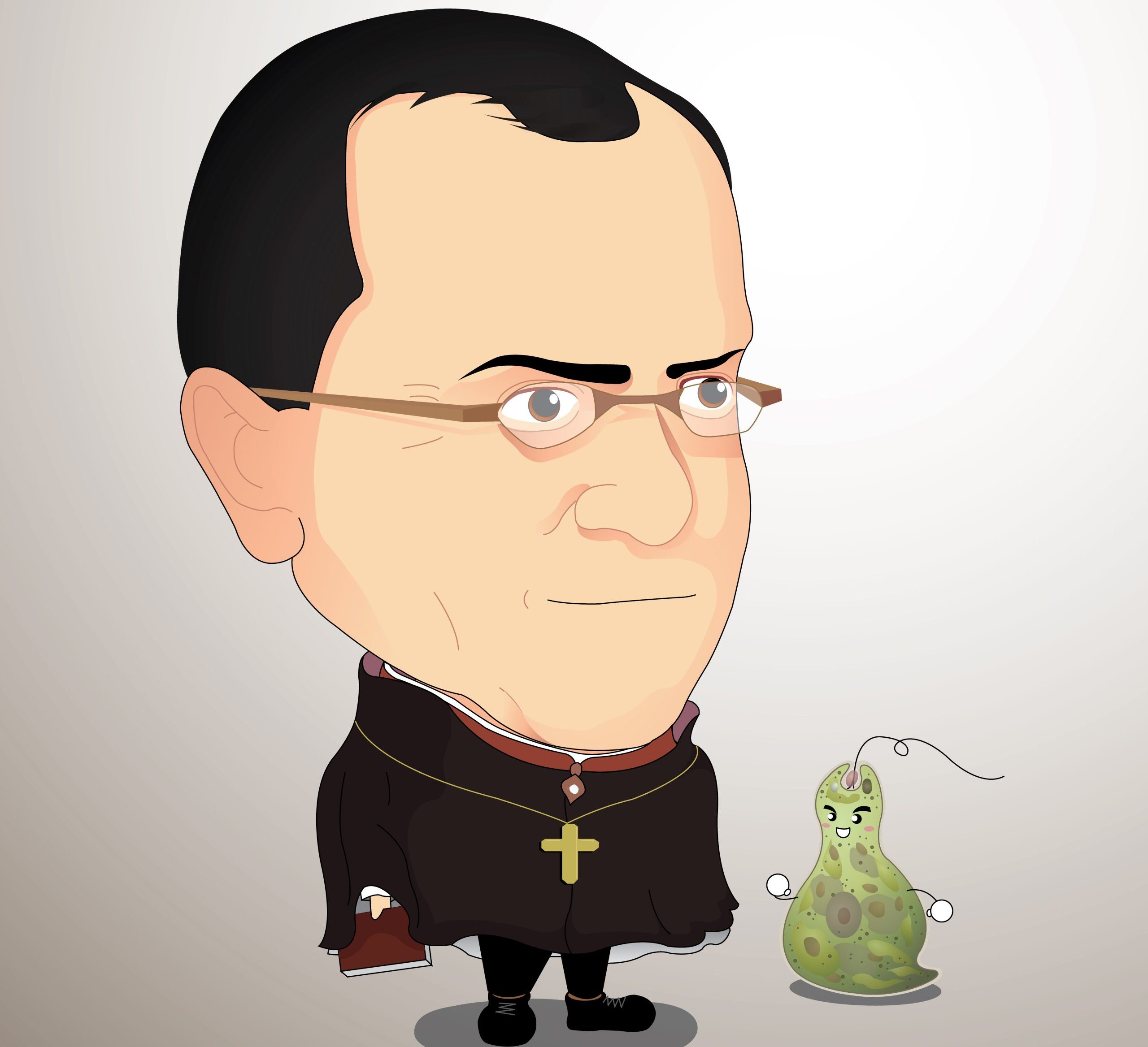 Una caricatura dell'abate agostiniano Gregor Mendel, vissuto nell'800, i cui studi sono alla base della scoperta del DNA
