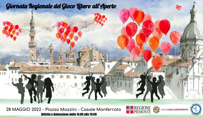 La Giornata regionale del gioco libero all’aperto arriva anche a Casale Monferrato! Sabato 28 maggio la coinvolgente iniziativa promossa dalla Regione Piemonte per promuovere l’importanza della libertà di movimento e del gioco delle bambine e dei bambini sarà infatti in piazza Mazzini.