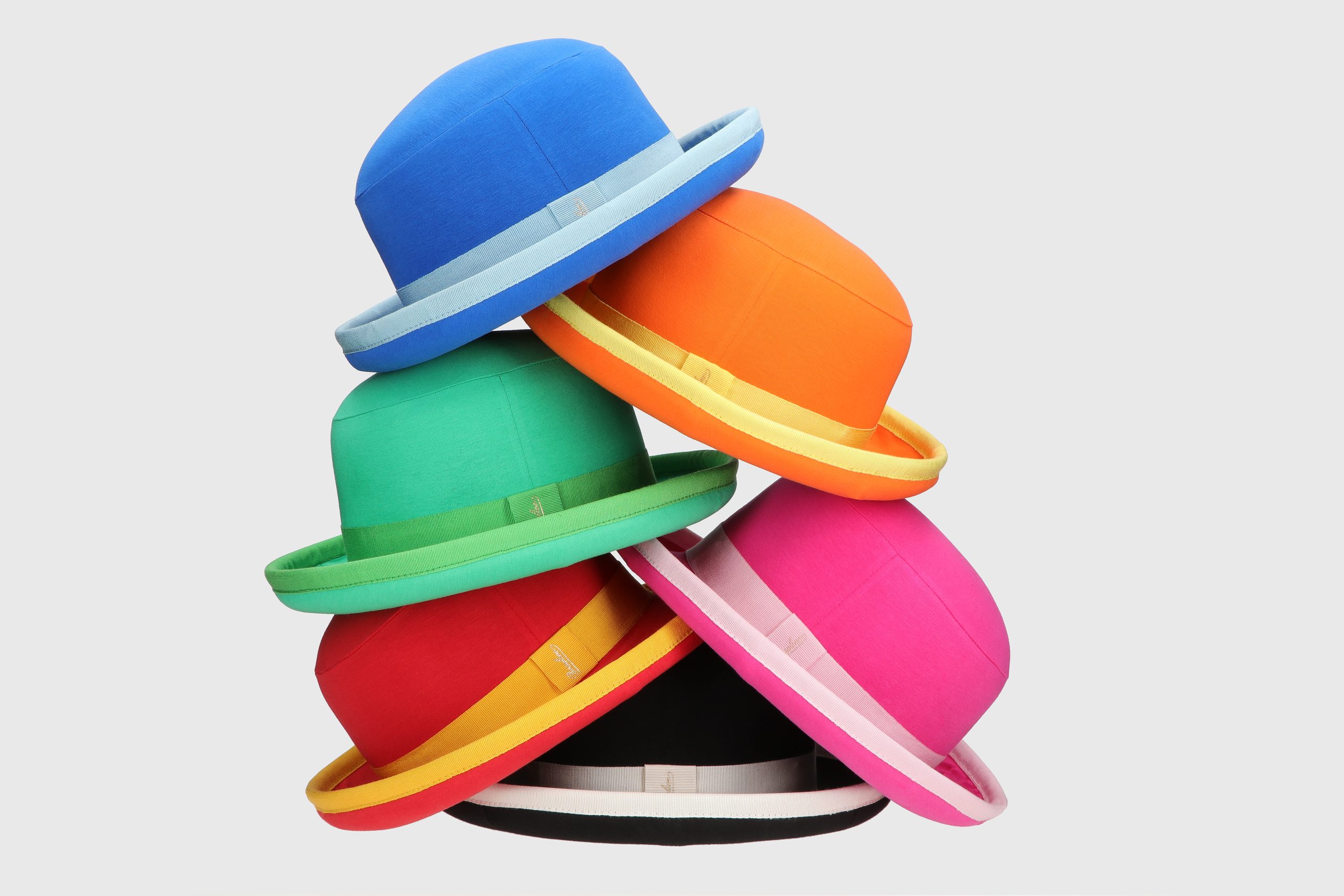 Per celebrare i 55 anni di carriera, Renato Zero ha chiesto alla Casa di Alessandria di reinterpretare il suo modello di copricapo preferito: la bombetta, simbolo di stile british. Collaborando con la costumista del cantautore, Borsalino ha dato vita a 6 esemplari in feltro di lapin rasato rivestiti in jersey di cotone con nastro e profili in grosgrain. I colori accesi di ciascun copricapo sono stati pensati per dialogare con gli audaci outfit dell’artista romano. Le bombette sono state realizzate da Borsalino a partire dalla materia prima, seguendo un processo produttivo artigianale che prevede più di 50 passaggi manuali per ogni singolo cappello.