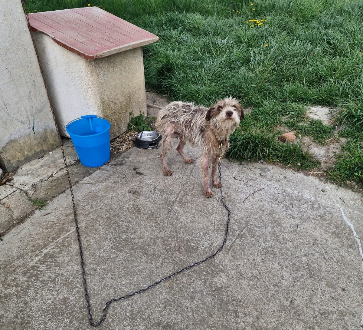 Muffin è un anziano meticcio di taglia medio-piccola, costretto a vivere legato a una catena fissa, accanto al muro di un capannone: una condizione inadeguata per qualsiasi animale e deleteria per un cane anziano e malato come lui. Il povero Muffin, un incrocio con un cane da caccia, è stato salvato dall’intervento delle Guardie Zoofile dell’OIPA di Alessandria, che hanno riscontrato immediatamente la sua estrema magrezza. Muffin presentava inoltre evidenti problemi alla cute e al pelo: pelle arrossata e sanguinante, forse a causa del continuo grattarsi, ma anche una perdita di pelo importante. Per questo, Muffin è stato subito prelevato e sottoposto ad accertamenti veterinari.