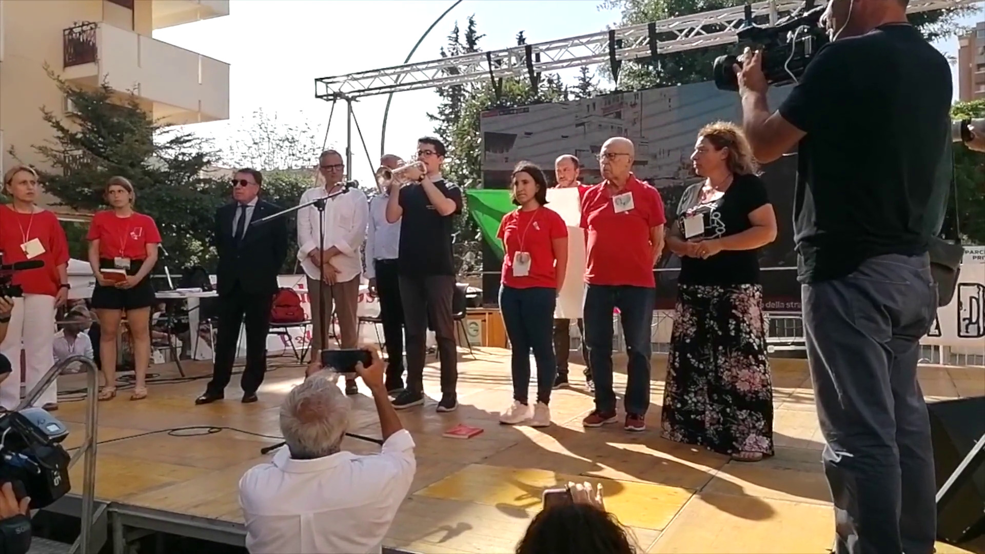PALERMO (ITALPRESS) – Alle 16:58 in via D’Amelio, a Palermo, un minuto di silenzio per ricordare la strage che 32 anni fa costò la vita al magistrato Paolo Borsellino e ai cinque agenti della sua scorta: Emanuela Loi, Vincenzo Li Muli, Walter Eddie Cosina, Agostino Catalaneo e Claudio Traina. Sul palco, allestito dal Movimento delle Agende Rosse, sono presenti i parenti delle vittime di mafia, insieme a Salvatore Borsellino.