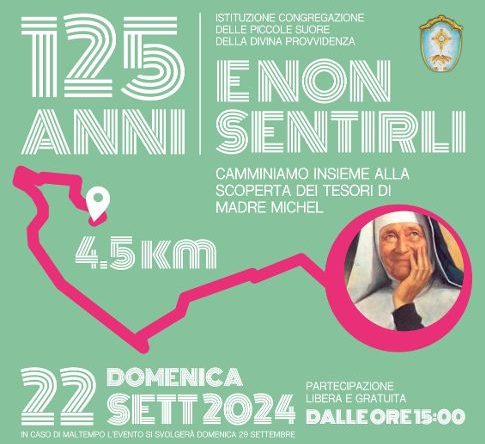 Si tratta di un’esperienza davvero insolita e suggestiva: una camminata, non una processione religiosa, un modo di vivere insieme il senso profondo del “cammino”: quello che caratterizza ogni persona, a tutte le età, e pure quello che da più di un secolo esprime il carisma di servizio e di attenzione cristiana ai “più bisognosi” insegnato e testimoniato da Teresa Michel e da tutte le Piccole Suore.