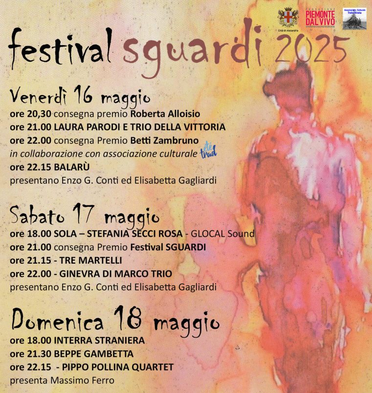 Da domani, venerdì 16, a domenica 18 maggio, torna ad Alessandria la 2^ edizione del Festival “SGUARDI”, rassegna di musica popolare unica nel panorama italiano. Il Festival, ideato e organizzato da Fondazione Piemonte dal Vivo, Comune di Alessandria e dall’Associazione Culturale ‘Trata Birata’, vedrà la partecipazione di importanti personalità della scena musicale italiana, aprendo una finestra su espressioni e visioni diverse della musica popolare, con particolare attenzione ai nuovi linguaggi creativi.