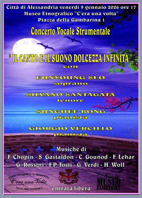 Il Museo Etnografico di Alessandria “C’era una volta”, di piazza della Gambarina 1, in collaborazione con il Comune di Alessandria e con il supporto degli ‘Amici del Museo Etnografico Gambarina’, presenta un ricco calendario di appuntamenti culturali per il mese di gennaio 2026, confermando il proprio ruolo di centro attivo di promozione culturale, musicale e storico-artistica.