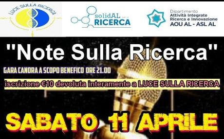 L’appuntamento è per dopodomani, sabato 11 aprile, al Circolo Sardo Su Nuraghe di Alessandria (via Sardegna 2) con l‘apericena alle 19.30 (20 euro), e la gara canora alle 21. Per quest’ultima è prevista una quota di iscrizione di 10 euro che verrà interamente devoluta a Solidal per la Ricerca, a sostegno delle attività di ricerca del Centro Studi Ricerca delle Professioni Sanitarie (CeRProS) del DAIRI dell’Ospedale Universitario di Alessandria.