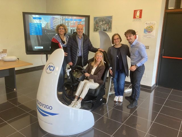 Nell’aula Martino, i ragazzi hanno potuto vivere un’esperienza immersiva grazie al simulatore di guida in realtà virtuale messo a disposizione da ACI Alessandria. Il dispositivo, basato su un software sviluppato dal circuito ACI Ready2Go, ha permesso di sperimentare diverse modalità di guida (città, autostrada, circuito), offrendo un’occasione concreta per comprendere meglio le regole della circolazione, la segnaletica e i comportamenti corretti alla guida.