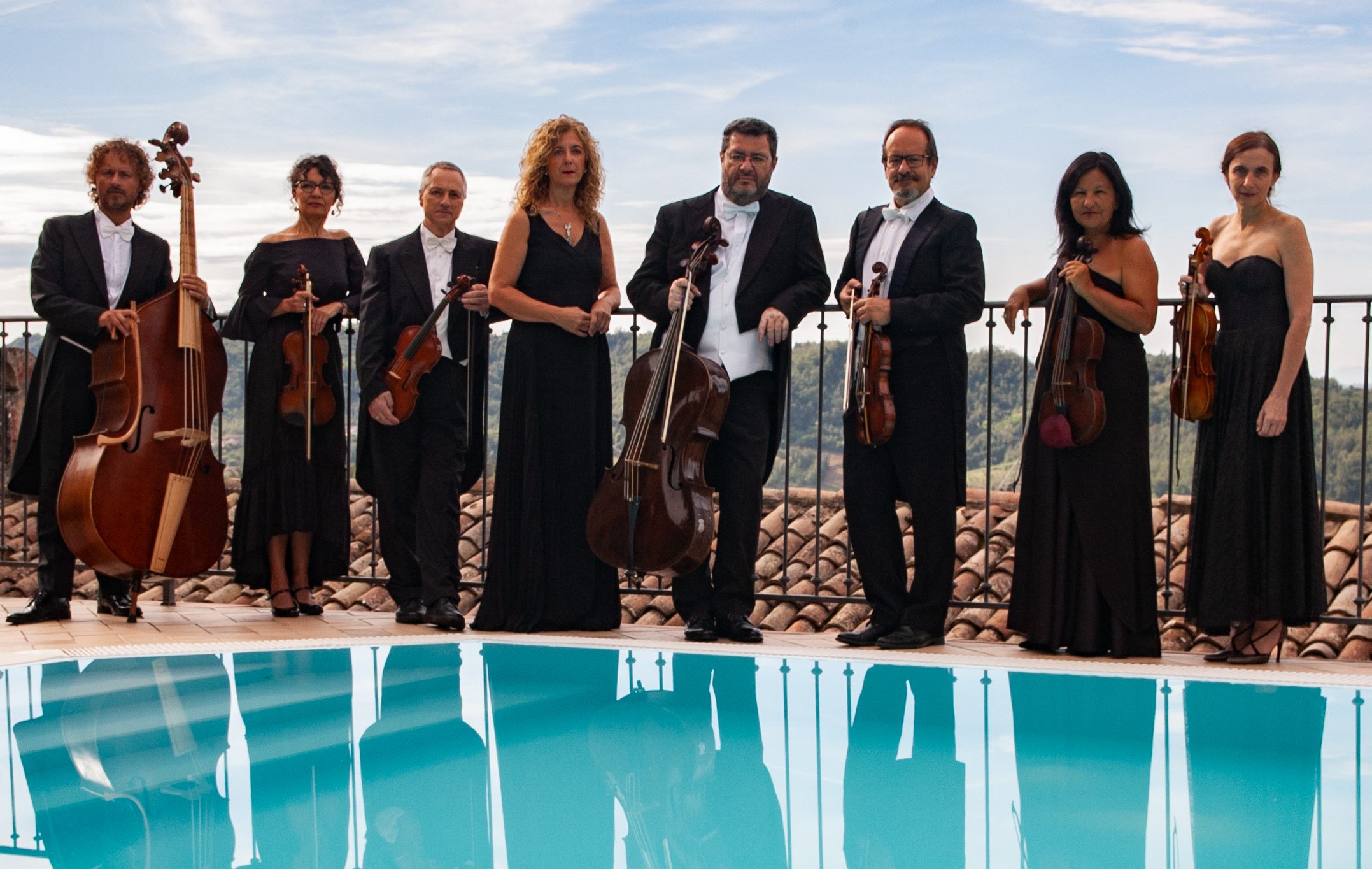 L’ARCHICEMBALO – Formazione composta da Marcello Bianchi, Marco Pesce, Paola Nervi, Vittoria Panato (violini) – Elena Saccomandi (viola) – Claudio Merlo (violoncello) – Matteo Cicchitti (violone) – Daniela Demicheli (clavicembalo e Direttore Artistico dell’Ensemble).