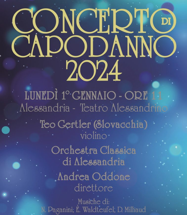 Protagonista sarà l’Orchestra Classica di Alessandria, con concerto di particolare pregio, sia per le composizioni in programma (musiche di N. Paganini, E. Waldteufel, D. Milhaud), e sia per l’eccellenza interpretativa dei Professori dell’Orchestra Classica di Alessandria, sotto la direzione del Maestro Andrea Oddone e con la partecipazione straordinaria del violinista slovacco Teo Gertler.