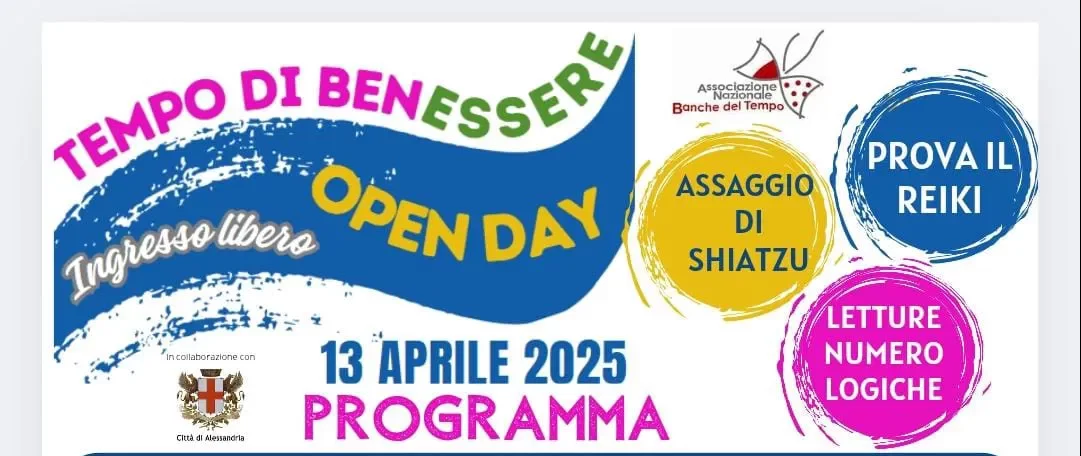 Domenica 13 aprile all’Ex Taglieria del Pelo di Alessandria (via Wagner 38/D), l‘APS ‘La Baia degli Angeli e Banca del Tempo’ organizza un Open Day dal titolo “È Tempo di BenEssere”, giornata dedicata al benessere psicofisico, alla consapevolezza e alla crescita personale. INGRESSO LIBERO.