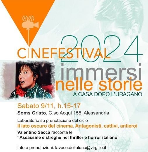 Ultimo appuntamento per i corsi di cinema organizzati dall’Associazione di cultura cinematografica e umanistica La Voce della Luna, con l’appuntamento di domani, sabato 9 novembre, alle 15, con il critico cinematografico Valentino Saccà e “Assassine e streghe nel thriller e horror italiano””.