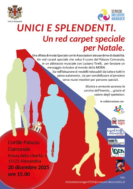 Sarà una sfilata di moda inclusiva, realizzata in collaborazione con le associazioni alessandrine di disabilità. Un tappeto rosso speciale nel cuore del Palazzo Comunale, sabato 20 dicembre.