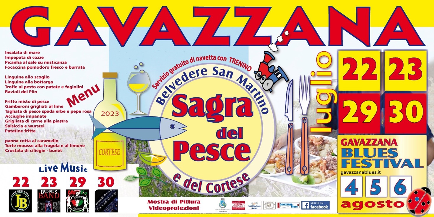 Organizzata ormai da oltre vent’anni al Belvedere San Martino, cornice naturale per uno dei panorami più invidiati della provincia, la Sagra del Pesce ha reso nota Gavazzana, piccolo paesino in provincia di Alessandria, che ospita ogni anno più di 5.ooo visitatori della sagra, quest’anno si svolgerà nei giorni 22-23 e 29-30 Luglio.