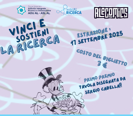 Grazie alla collaborazione con il comitato direttivo di ALEcomics, sarà possibile acquistare i biglietti della lotteria solidale al prezzo di 3 €, sostenendo il Dipartimento Attività Integrate Ricerca e Innovazione (DAIRI) dell’Azienda Ospedaliero – Universitaria di Alessandria scrivendo al numero 392-0611270 e allo stand di Solidal che sarà presente all’iniziativa.