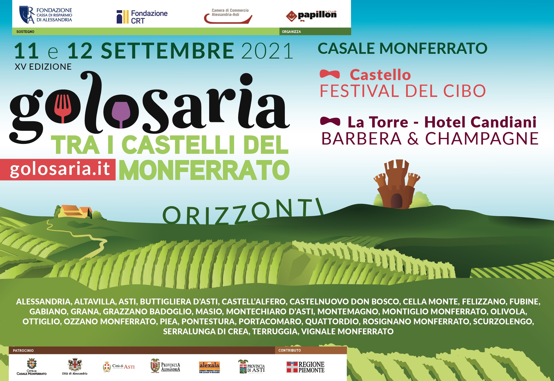 Saranno gli “ORIZZONTI” il tema della 15^ edizione di Golosaria tra i castelli del Monferrato, in programma sabato 11 e domenica 12 settembre 2021