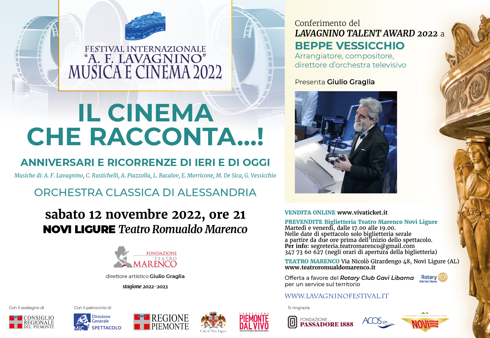 “Il cinema che racconta…!” sarà un omaggio a celebri colonne sonore, ma anche un modo per ricordare anniversari e ricorrenze e per premiare un illustre ospite.