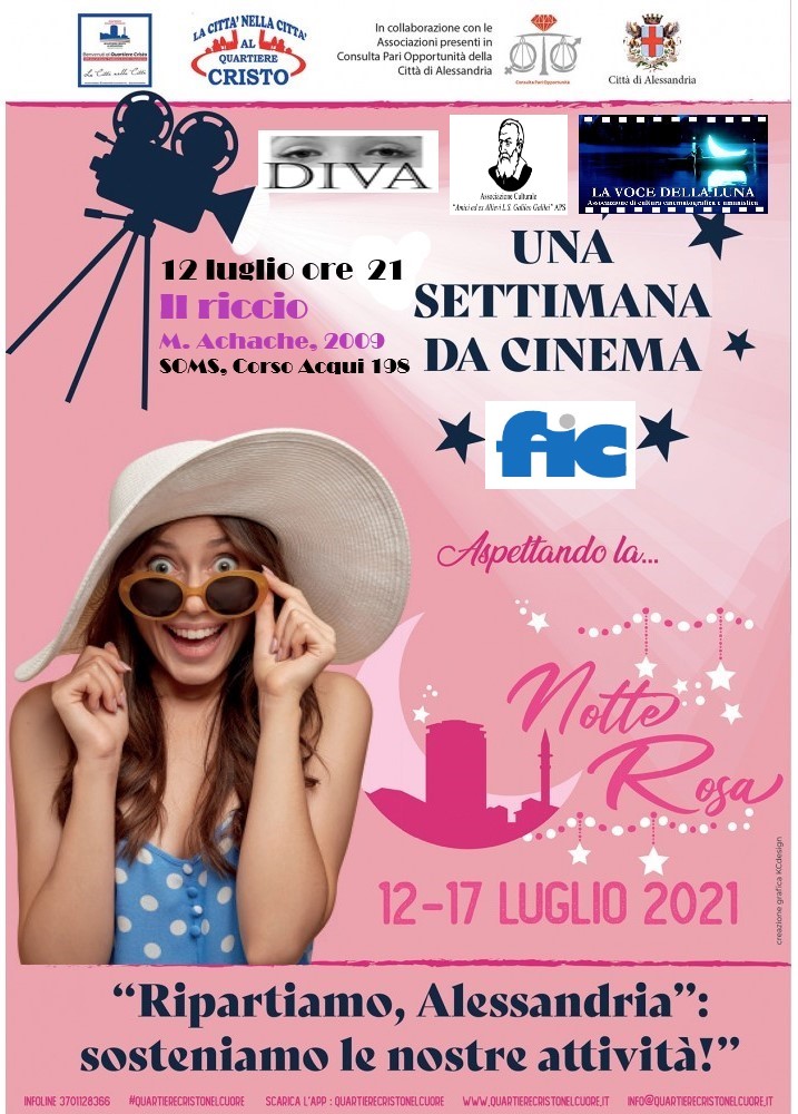 Motivo conduttore della prima “Notte Rosa” di Alessandria – organizzata dall’Associazione “Attività e Commercio del Quartiere Cristo” e dalla Consulta Pari Opportunità della Città di Alessandria con il Comune di Alessandria – in programma dal 12 al 17 luglio prossimi, è la Settima Arte in tutte le sue sfumature.