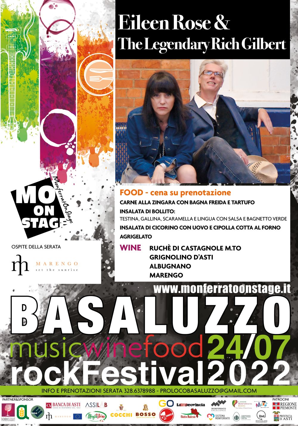 Domenica 24 luglio, invece, il festival arriverà in Via Nuova a BASALUZZO (AL) dove si terrà il concerto di EILEEN ROSE & THE LEGENDARY RICH GILBERT. L’eclettica artista originaria di Boston porterà sul palco del Monferrato On Stage la sua miscela elettrizzante di rock, country, blues, rockabilly e pop, accompagnata dalla leggendaria chitarra di Rich Gilbert, per anni al fianco di Frank Black, cantante e fondatore dei Pixies, nei Frank Black and the Catholics.