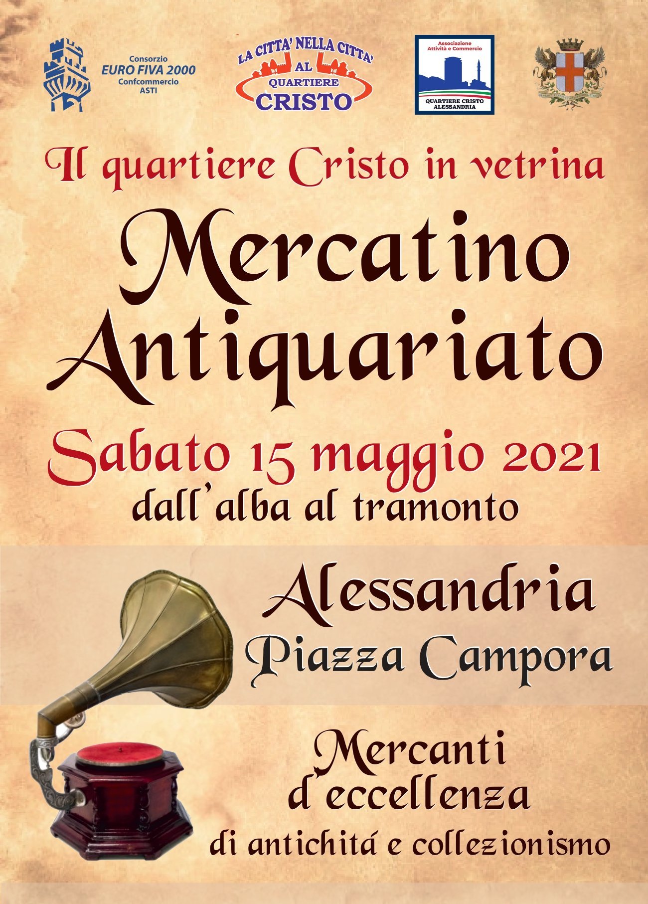 Al Quartiere Cristo si attende il primo evento del dopo lockdown, sabato 15 maggio dalle ore 8,00 alle ore 18,00 in Piazza Campora ci saranno 65 operatori dell’antiquariato provenienti da ogni parte del Piemonte. L’evento promosso dall’Associazione Attività e Commercio del Quartiere Cristo con il patrocinio della Città di Alessandria e la partecipazione del Consorzio Eurofiva 2000 di Asti, rientra nel progetto di valorizzazione dell’intero territorio della zona sud che la Commissione Alessandria Sud e i Commercianti stanno portando avanti da tempo. In caso di maltempo il mercatino sarà rinviato a Sabato 19 giugno.