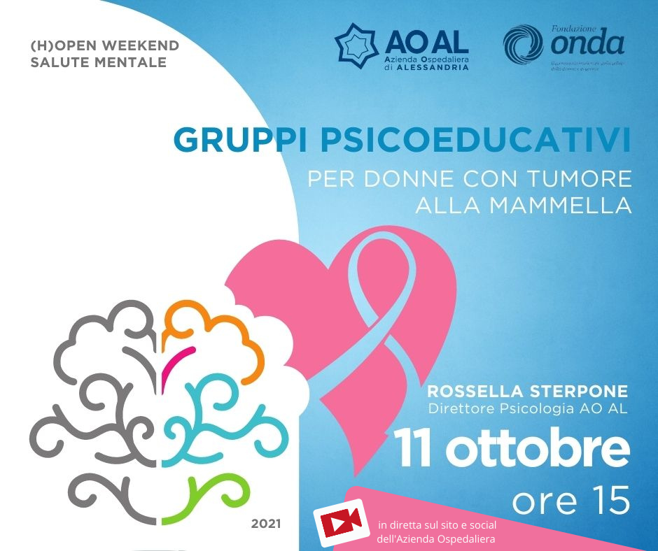 In occasione della Giornata Mondiale della Salute Mentale, l’Azienda Ospedaliera di Alessandria aderisce all’(H)Open Weekend promosso da ONDA, l’Osservatorio nazionale sulla salute della donna e di genere, organizzando lunedì 11 ottobre un incontro per parlare del nuovo progetto della Struttura di Psicologia dedicato alle donne con tumore al seno.