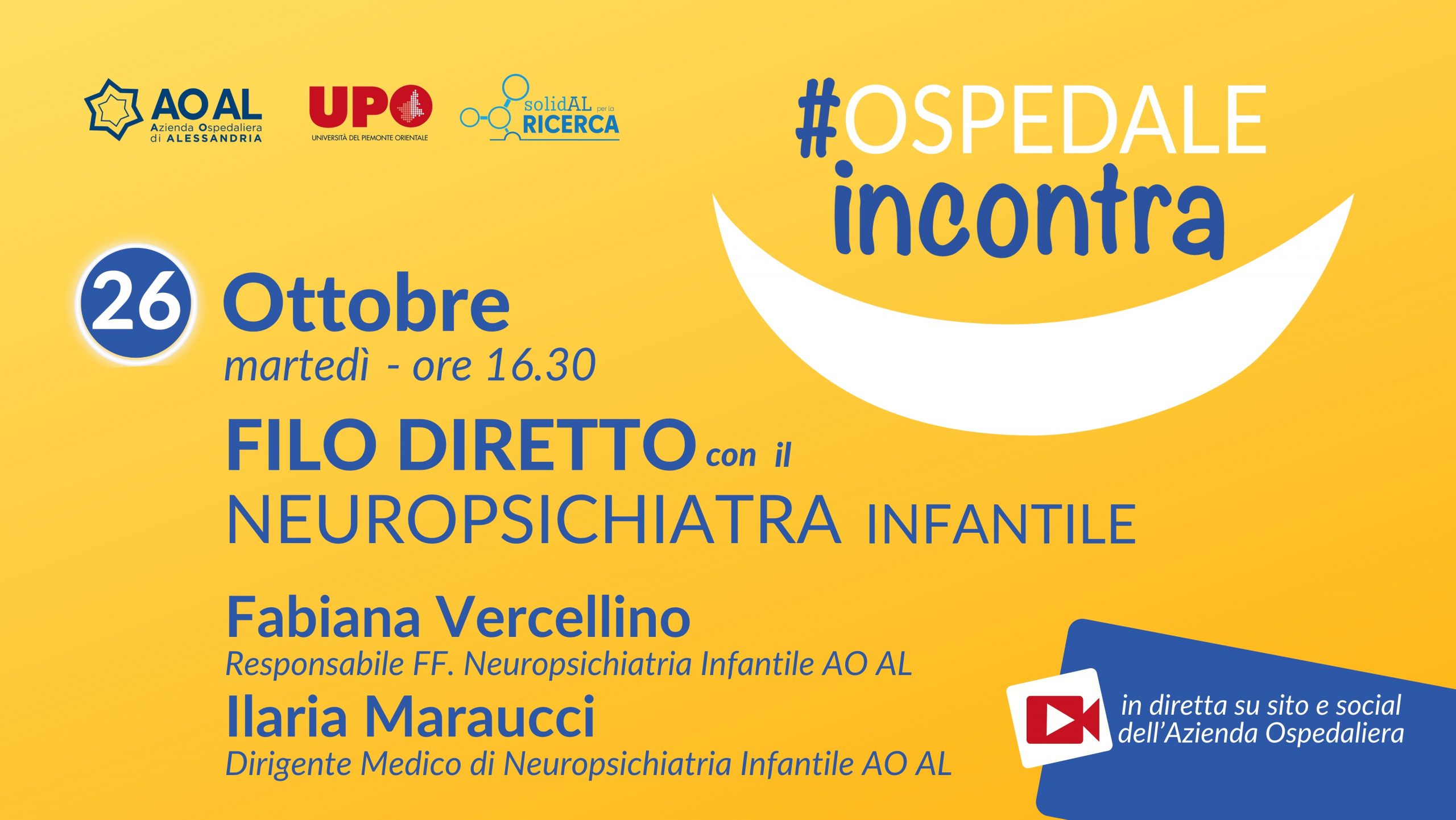 Sarà con Fabiana Vercellino, Responsabile FF della Neuropsichiatria Infantile, e con Ilaria Maraucci, Dirigente Medico della stessa struttura, il filo diretto del prossimo appuntamento di Ospedale Incontra che si terrà martedì 26 ottobre in diretta sui social dell’Azienda Ospedaliera di Alessandria a partire dalle ore 16.30.
