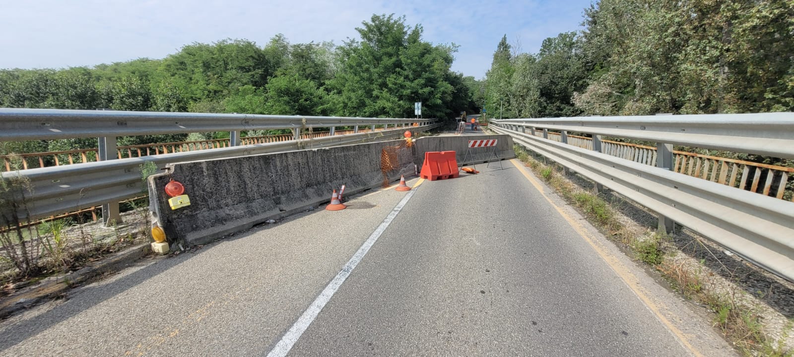 I lavori della Provincia (quasi 1.000.000 di euro) sono stati finanziati con decreto MIMS del 5 maggio 2022, e sono pressoché finiti: prevedevano il rinforzo delle spalle mediante un placcaggio frontale e laterale in cemento armato, la sostituzione degli appoggi, il sollevamento dell’impalcato e il ripristino e sostituzione degli appoggi in corrispondenza delle selle Gerber.
