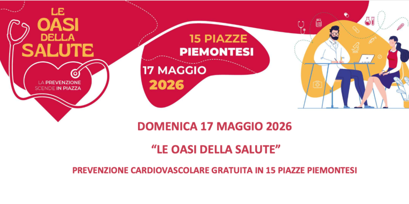 DOMENICA 17 MAGGIO, in 15 piazze piemontesi, arrivano “LE OASI DELLA SALUTE”, giornata di screening cardiovascolare aperta a tutti e completamente gratis. L’iniziativa nasce dalla volontà dell’Assessorato alla Sanità della Regione Piemonte e vede la firma come Responsabile scientifico del dott. Federico Nardi, direttore di Cardiologia dell’Ospedale Santo Spirito di Casale Monferrato e direttore del Dipartimento Medico ASL Alessandria.