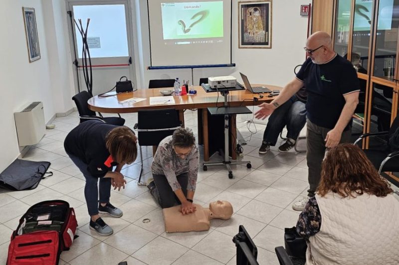 Durante la mattinata, gli operatori della Croce Verde hanno guidato i presenti in un percorso formativo focalizzato in particolare sull’arresto cardiaco, approfondendo il funzionamento della catena della sopravvivenza e illustrando le azioni fondamentali da compiere nei primi minuti, spesso decisivi per salvare una vita.