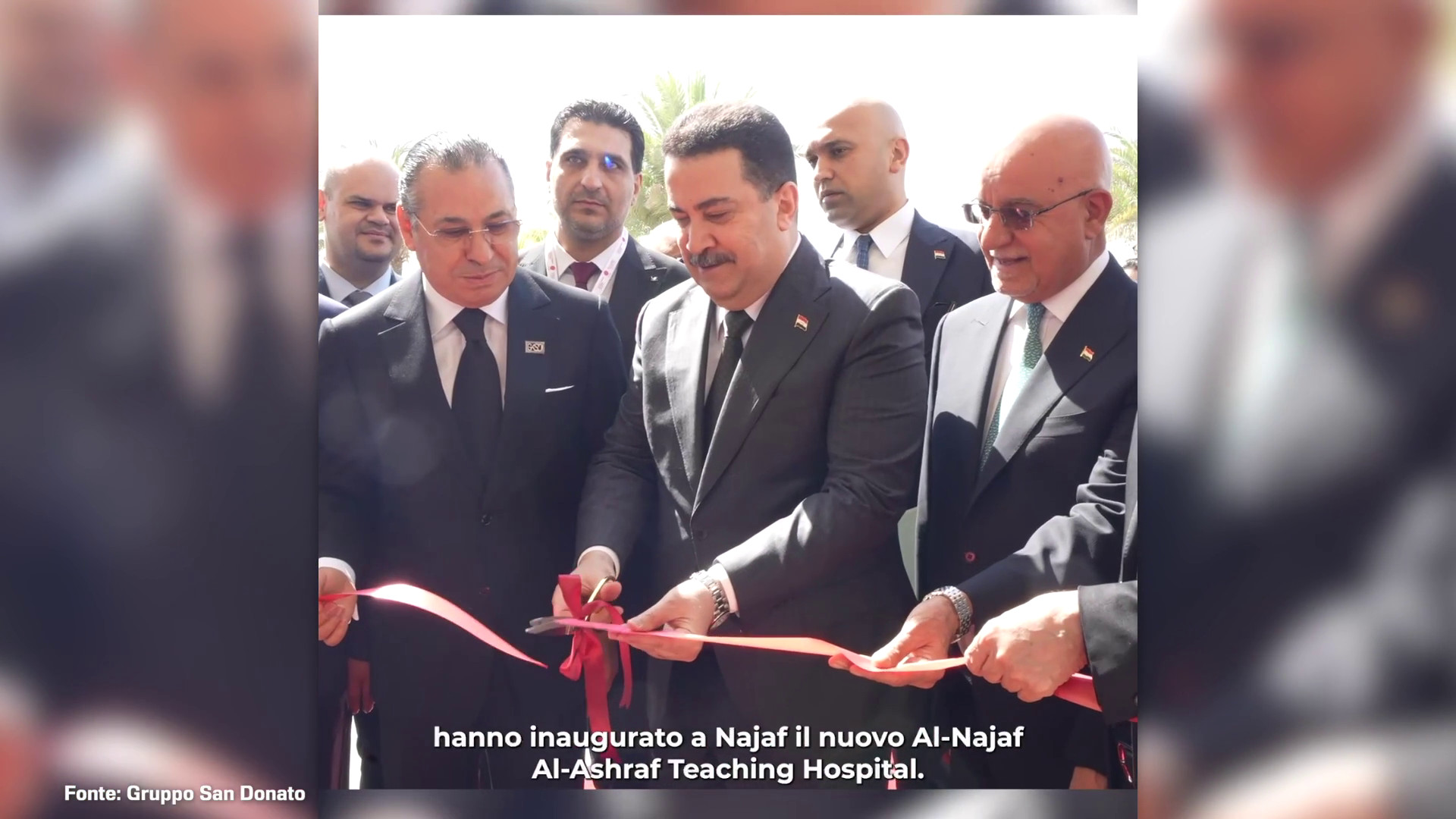 MILANO (ITALPRESS) – Alla presenza del Primo Ministro dell’Iraq, Mohammed Shia’ Al-Sudani, del Ministro della Salute iracheno, Saleh Al-Hasnawi, dell’Ambasciatore italiano in Iraq, Maurizio Greganti è stato inaugurato il Al-Najaf Al-Ashraf Teaching Hospital, la cui gestione è stata affidata, per i prossimi due anni, dal governo iracheno al Gruppo San Donato (GSD). A fare gli onori di casa, Kamel Ghribi, Vicepresidente del Gruppo San Donato e Presidente di GKSD Investment Holding, affiancato dalla Vicepresidente del Senato della Repubblica Italiana, Licia Ronzulli e dal Rappresentante speciale della UE per la regione del Golfo, Luigi Di Maio, giunti appositamente dall’Italia.