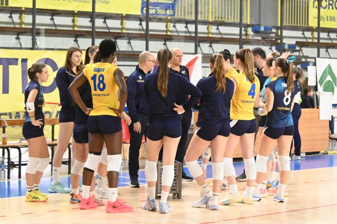 2° SET – Partenza sugli stessi ritmi del primo, con battute, ricezioni, difese e attacchi sempre precisi e in linea con le richieste dello staff tecnico. Leggero calo di Balboni e compagne sul 23-15, ma poi rapida chiusura 25-19, 2-0.