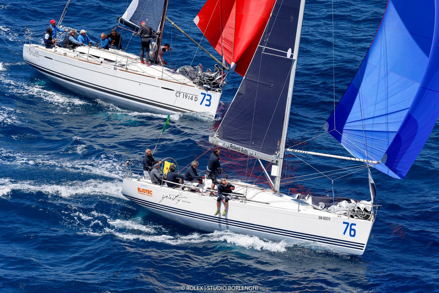 Domenica, invece, con un vento di scirocco da sud di 13/15 nodi con un po’ di onda fastidiosa, è stato possibile disputare due regate, molto tecniche. Nella prima regata Spirit of Nerina è partita bene ed ha fatto un’ottima prima bolina, girando la prima boa per seconda e guadagnando ancora nella poppa. Ma alla seconda issata del fiocco c’è stato un brutto imprevisto, come racconta il presidente Paolo Ricaldone: “Abbiamo avuto la rottura di uno dei due canali del ‘tuff luff’, cioè la canalina di prua dove si inserisce il fiocco per essere issato. Abbiamo quindi perso parecchio tempo per riuscire a cambiare il fiocco e a issarne uno nuovo sull’altro canale, riuscendo comunque a terminare la prova ottavi. Questa rottura ci ha però un po’ condizionato emotivamente anche nella seconda regata di giornata nella quale, nonostante un’ottima partenza, non siamo riusciti a sviluppare la nostra solita velocità se non nell’ultimo lato di bolina: abbiamo concluso quinti”.